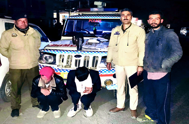 पुलिस ने मौके से दो युवकों को गिरफ्तार किया है, जिनकी पहचान राजन डोगरा (28) पुत्र स्वर्गीय नंद लाल डोगरा, निवासी गांव गवाच, डाकघर कलभोग, तहसील कोटखाई और आयुष (21) पुत्र प्रकाश चंद, निवासी गांव बटावड़ा, डाकघर कलभोग, तहसील कोटखाई के रूप में की गई है।