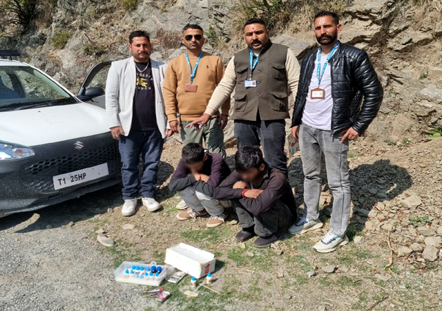 जानकारी के अनुसार शनिवार दोपहर करीब 1 बजे पुलिस टीम ने तलेरू के निकट नाकाबंदी की हुई थी और वाहनों की चैकिंग कर रही थी। इसी दौरान पठानकोट की ओर से तलेरू की तरफ आ रही एक ऑल्टो कार को जांच के लिए रोका गया। पुलिस को देखकर कार में सवार युवक घबरा गए। जब पुलिस ने कार और युवकों की तलाशी ली तो उनके कब्जे से 10.08 ग्राम चिट्टा बरामद हुआ। गिरफ्तार किए गए दाेनाें आरोपी चुराह तहसील के रहने वाले हैं, जिनकी पहचान कमल भारद्वाज पुत्र खेम राज निवासी गांव धार (भंजराड़ू) और मोहिंद्र सिंह उर्फ धौनी पुत्र प्रभुदयाल निवासी गांव (चरोटा) के रूप में की गई है।