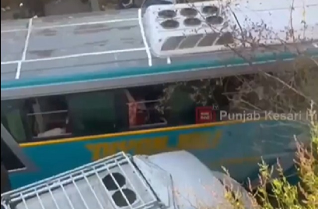 चिंतपूर्णी में श्रद्धालुओं से भरी बस की फेल हुई ब्रेक, बैक हाेकर दीवार से टकराई, मची चीख-पुकार