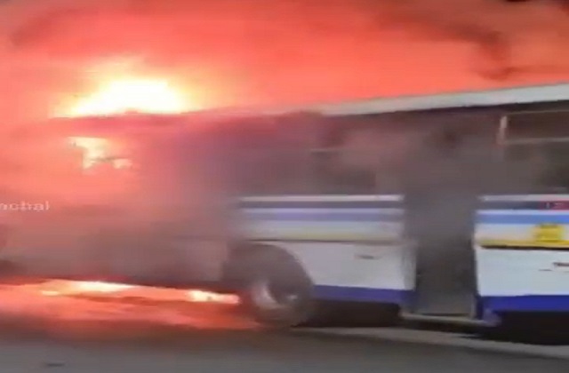 बैजनाथ बस स्टैंड में आधी रात काे धू-धू कर जली CTU की बस, HRTC की गाड़ी भी चपेट में आई