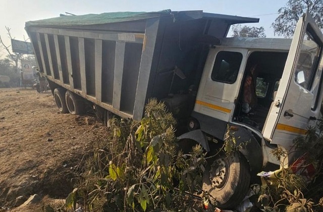 नाहन-पांवटा हाईवे पर हादसा: घने कोहरे के चलते अनियंत्रित होकर नाले में गिरा टिप्पर