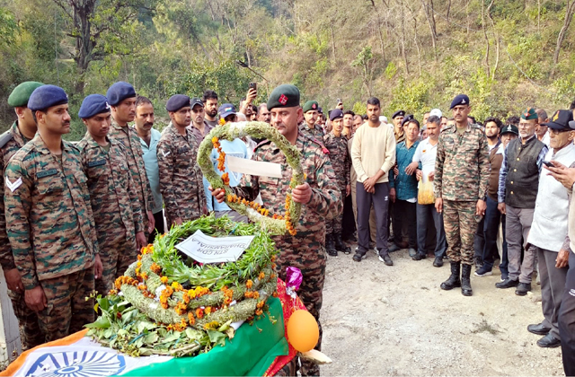 मंगलवार को जवान का पार्थिव शरीर उनके पैतृक गांव पहुंचा, जहां सैन्य सम्मान के साथ उन्हें अंतिम विदाई दी गई। उनके भाई ने उन्हें मुखाग्नि दी। शहीद जवान को अंतिम विदाई देने के लिए 8 जेएकेएलआई, 100 फील्ड रेजिमेंट और सीएमपी के जवानों सहित कई सैन्य अधिकारी और भारी संख्या में स्थानीय लोग मौजूद रहे।