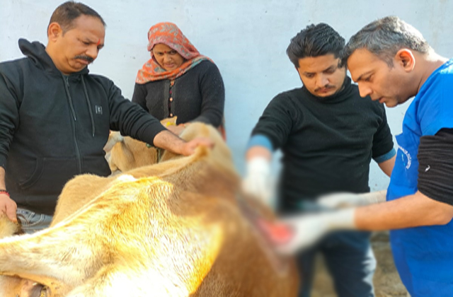 भवारना (अतुल): भवारना के पशु चिकित्सालय में सेवाएं दे रहे निशांत शर्मा ने समीपवर्ती घडूं गांव में एक गाय की आंत का सफल ऑप्रेशन करके उसे नया जीवन दिया। एक सप्ताह पहले घडूं निवासी ललिता देवी भवारना पशु चिकित्सालय पहुंची। उन्होंने डॉक्टर निशांत शर्मा को बताया कि उनकी गाभिन गाय बीमार है और कुछ भी खा नहीं रही है। डॉक्टर निशांत शर्मा तुरन्त अपनी टीम के साथ मौके पर पहुंचे। उन्होंने गहनता से गाय की जांच की। उन्होंने पाया कि गाय द्वारा खाया पराल उसकी आंतों में फंस गया है जिससे वो कुछ भी नहीं खा रही है।
