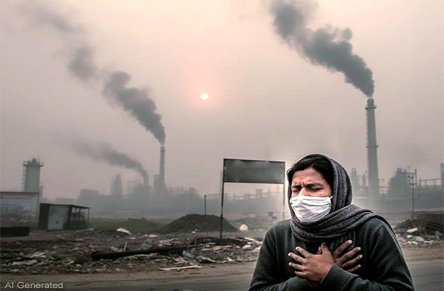 औद्योगिक उत्सर्जन: सैकड़ों कारखानों से निकलने वाला अनियंत्रित धुआं।
