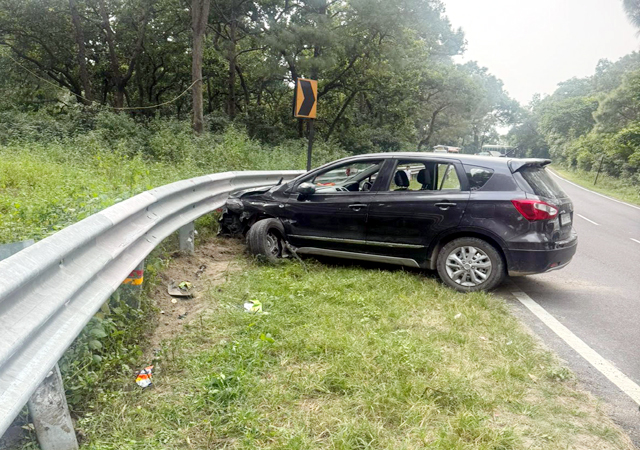 जब उनकी कार लाहड़ के पास पहुंची तो अचानक सड़क पर पशु आ गए, जिन्हें बचाने के प्रयास में चालक कार से नियंत्रण खो बैठा। इससे कार सड़क किनारे लगी रेलिंग से टकराकर दुर्घटनाग्रस्त हो गई। सूचना मिलते ही ट्रैफिक पुलिस मौके पर पहुंची और प्रारंभिक जांच शुरू कर दी है। थाना प्रभारी अम्ब अनिल उपाध्याय ने बताया कि मामले की जांच की जा रही है।
