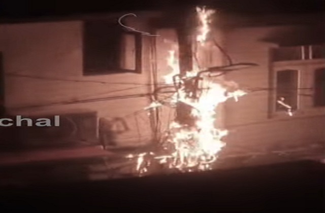 नाहन में शॉर्ट सर्किट से दहला छोटा चौक बाजार: बिजली पोल पर अचानक भड़की आग