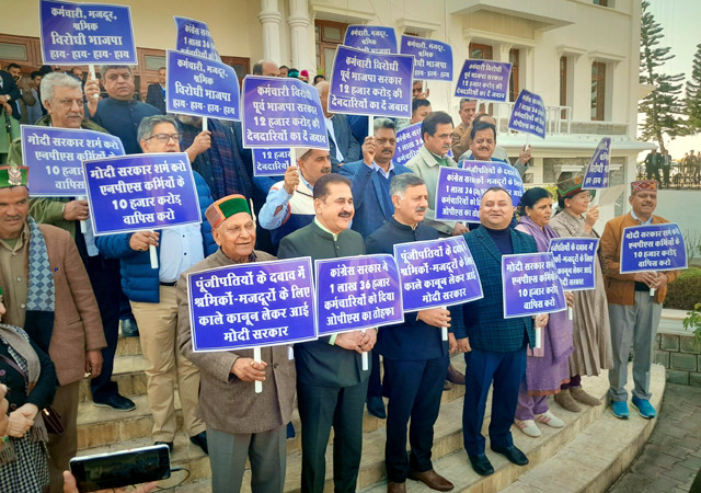 Kangra: विधानसभा के बाहर केंद्र सरकार के खिलाफ गरजी कांग्रेस, NPS में जमा ₹10 हजार करोड़ वापस करने की उठाई मांग