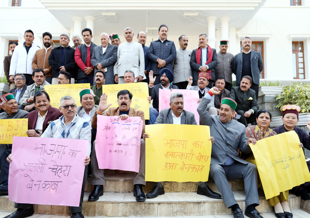 Kangra: पोक्सो एक्ट में फंसे BJP विधायक के खिलाफ कांग्रेस का हल्ला बोल, विधानसभा परिसर में किया प्रदर्शन