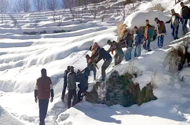 हिमाचल में चारपाई बनी एम्बुलैंस, ग्रामीणों ने 3 फुट बर्फ में 10 KM कंधे पर उठाकर अस्पताल पहुंचाया मरीज