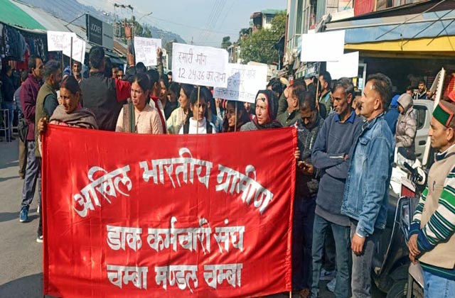 चम्बा (रणवीर): ऑल इंडिया ग्रामीण डाक सेवक संघ ने मांगों को लेकर अनिश्चितकालीन हड़ताल शुरू कर दी है। मंगलवार को डाक सेवकों ने जिला मुख्यालय में मुख्य डाकघर के बाहर प्रदर्शन किया। इसके अलावा शहर में एक रैली निकाली। इस दौरान केंद्र सरकार के खिलाफ नारेबाजी की। इस मौके पर ग्रामीण डाक सेवक संघ के अध्यक्ष बीएस राणा ने कहा कि केंद्र सरकार के आश्वासन पर पहले से ही कर्मचारियों का सहयोगात्मक रवैया रहा है, लेकिन अब उन्हें खाली हाथ रिटायर होना मंजूर नहीं है।