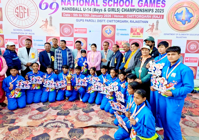पांवटा साहिब (कपिल): राजस्थान के चित्तौड़गढ़ में आयोजित 69वीं नैशनल गेम्स में हिमाचल प्रदेश की बालिका हैंडबाल टीम ने शानदार प्रदर्शन करते हुए सिल्वर मैडल (द्वितीय स्थान) अपने नाम किया। टीम के साथ चीफ दी मिशन नियुक्त पांवटा साहिब के कोटड़ी व्यास स्कूल में तैनात पीईटी धर्मेंद्र चौधरी ने बताया कि फाइनल मुकाबले में हिमाचल प्रदेश का सामना मेजबान राजस्थान से हुआ।