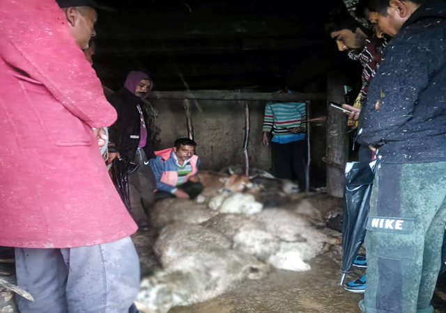 बता दें कि दो दिन से हो रही लगातार तेज बारिश के चलते मंगलवार सुबह लगभग 6 बजे किलोड़ पंचायत के थतीधर स्थित अधवारी में अचानक आसमानी बिजली गिर गई। घटना में जखराल गांव के निवासी पवन पुत्र कन्हैया की 7 भेड़ें, 1 गाय और 1 बैल तथा मुकेश कुमार पुत्र कंठ निवासी जखराल के 2 बैलों की मौके पर ही मौत हो गई। वहीं पवन कुमार की 21 वर्षीय बेटी भारती राणा को बिजली का हल्का झटका महसूस हुआ। लड़की की एक बाजू सुन्न हो गई है। घटना के समय दोनों परिवारों के सदस्य अपने मवेशियों के साथ अधवारी में ही मौजूद थे। गनीमत यह रही कि वे सभी सुरक्षित हैं।