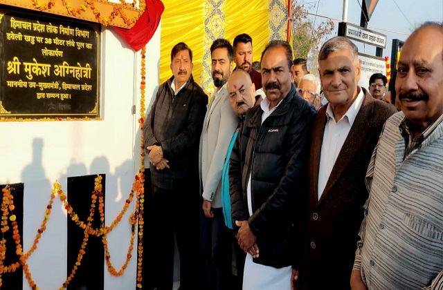 हरोली। उपमुख्यमंत्री मुकेश अग्निहोत्री ने हरोली खड्ड पर 4 करोड़ की लागत से बने 36 मीटर स्पैन के ‘बो-स्ट्रिंग आर.सी.सी. बीम पुल’ का लोकार्पण किया। यह पुल एक वर्ष से भी कम अवधि में पूर्ण हुआ है। इसके निर्माण से बरसात के दौरान स्थानीय लोगों और वाहनों की आवाजाही अधिक सुरक्षित और सुगम हो गई है। इस अवसर पर उप मुख्यमंत्री मुकेश अग्निहोत्री ने जनता को संबोधित करते हुए कहा कि हरोली विस में निर्णायक विकास हो रहा है। हरोली विस में 126 करोड़ से 8 पुलों का निर्माण हो रहा है और 85 करोड़ की लागत से 10 सड़कों के निर्माण कार्य चल रहा है।