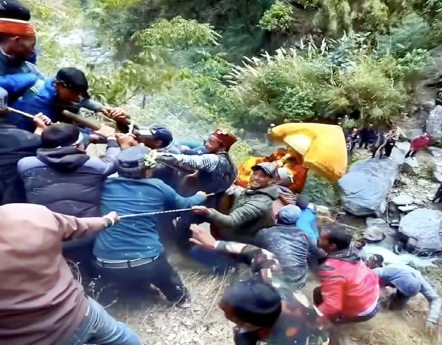 Himachal: देव आस्था के आगे बौने साबित हुए खतरनाक पहाड़, देवरथ को रस्सी से खींचकर करवाया पार