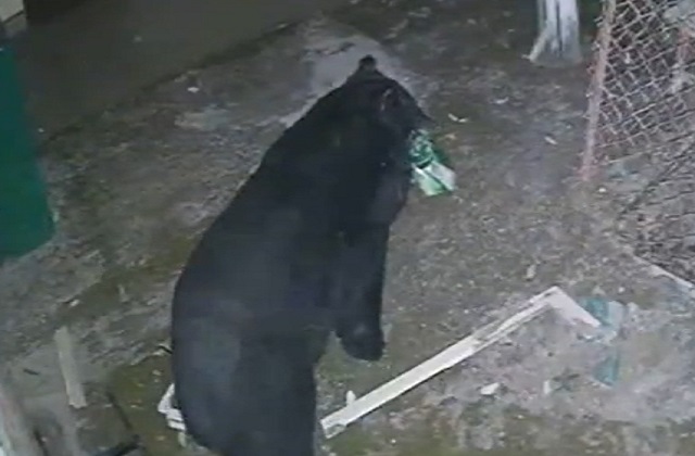 एक जंगली भालू लोहे के बाड़े को पार करता हुआ सीधे एक घर की रसोई की खिड़की तक पहुँचा। कुछ ही मिनटों में, उसने उस खिड़की को तोड़ डाला और अंदर घुस गया। भालू ने आराम से रसोई में रखा भोजन उठाया और मौके से चला गया।