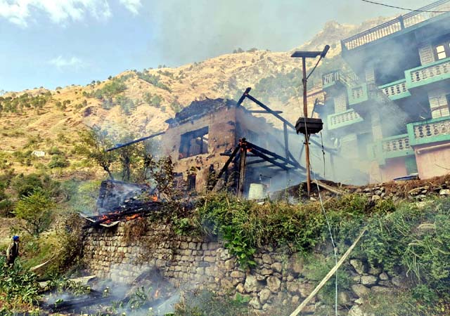 कुल्लू: बंजार के थवारी में दोमंजिला मकान आग की भेंट चढ़ा, 15 लाख रुपए का नुक्सान