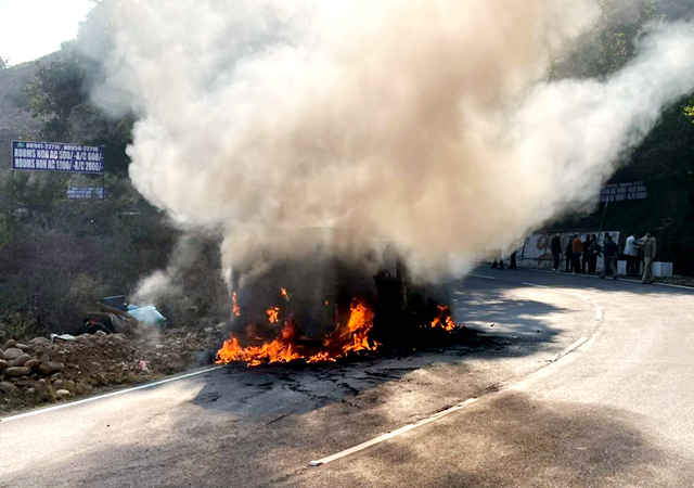 Kangra: ढलियारा के तीखे मोड़ पर ''आग का गाेला'' बनी टैक्सी, मुम्बई के 9 यात्रियों ने ऐसे बचाई जान
