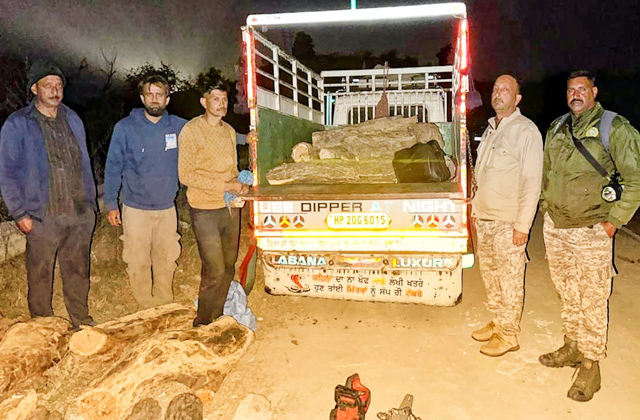 Una: वन विभाग ने खैर की लकड़ी से लदा ट्राला पकड़ा, एक आरोपी काबू, दूसरा मौके से फरार