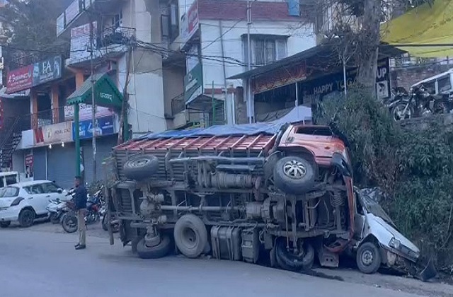 Himachal: खड़ी कारों पर पलटा राशन से भरा ट्रक, गाड़ियां चकनाचूर, एक राहगीर भी चपेट में आया