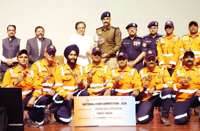 शिमला (राक्टा): हिमाचल प्रदेश राज्य आपदा मोचन बल (एचपी एसडीआरएफ) की टीम ने एक बार फिर राष्ट्रीय स्तर पर शानदार प्रदर्शन करते हुए इतिहास रच दिया है। टीम ने गाजियाबाद स्थित नैशनल डिजास्टर रिस्पॉन्स फॉर्स (एनडीआरएफ) की 8वीं बटालियन परिसर में बीते 9 से 11 मार्च तक आयोजित राष्ट्रीय सीएसएसआर प्रतियोगिता में पहला स्थान हासिल किया है।