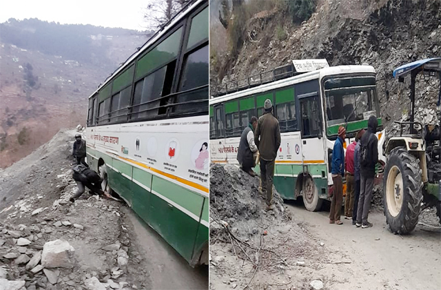 प्राप्त जानकारी के मुताबिक एचआरटीसी की यह बस सुबह 5 बजे सनवाल से पठानकोट के लिए रवाना हुई थी। करीब सुबह 7 बजे जब बस सरेला के पास पहुंची तो अचानक सड़क का एक हिस्सा नीचे बैठ गया। इसके चलते बस का पिछला टायर धंसी हुई जमीन में फंस गया। बस में उस वक्त करीब 15 यात्री सवार थे। अचानक लगे झटके और बस के झुकते ही यात्रियों की सांसें अटक गईं, लेकिन चालक ने समझदारी दिखाते हुए तुरंत ब्रेक लगाकर बस को स्थिर कर दिया।