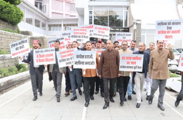 विपक्ष के नेता जयराम ठाकुर के नेतृत्व में भाजपा विधायकों ने ''कांग्रेस हटाओ माफिया भगाओ, कमीशनखोरी बंद करो जनता का पैसा बचाओ'' जैसे नारों वाली तख्तियां लेकर कांग्रेस के खिलाफ नारे लगाए। शिलाई में सैकड़ों चीड़ के पेड़ों की कथित अवैध कटाई को ''गंभीर मामला'' बताते हुए ठाकुर ने कहा कि दिन दहाड़े जिस तरह से पेड़ों को काटा गया है उससे स्पष्ट तौर पर पूरी घटना में राजनीतिक संरक्षण की बू आ रही है। उन्होंने आरोप लगाया कि इस घटना के पीछे एक कांग्रेस नेता का हाथ है। भाजपा नेताओं ने कहा कि 25 पेड़ काटने की अनुमति दी गई थी लेकिन एसडीएम कार्यालय, थाना और वन रेंज कार्यालय से महज 500 मीटर की दूरी पर स्थित एक निजी जमीन पर 300 से अधिक पेड़ काट दिए गए।