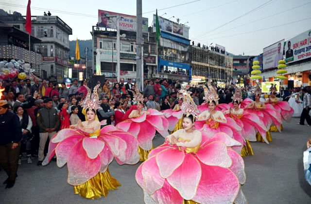 मंडी (फरेंद्र): अंतर्राष्ट्रीय महाशिवरात्रि महोत्सव में आयोजित अंतर्राष्ट्रीय कल्चरल परेड में शुक्रवार को देश-विदेश के 35 सांस्कृतिक दलों ने भाग लेकर पूरे शहर को रंग, संगीत और लोक परंपराओं से सराबोर कर दिया। शिक्षा मंत्री रोहित ठाकुर ने डीसी कार्यालय परिसर से परेड को हरी झंडी दिखाकर रवाना किया। परेड सेरी मंच से होते हुए इंदिरा मार्कीट परिसर तक पहुंची, जहां मार्ग के दोनों ओर खड़े हजारों लोगों ने कलाकारों का स्वागत किया। सबसे आगे भारत का तिरंगा लहराता रहा था, जिसके पीछे देश-विदेश के कलाकार पारंपरिक वेशभूषा में नृत्य प्रस्तुत करते हुए आगे बढ़े। परेड के अंत में मधुर धुनों के साथ होमगार्ड का बैंड आकर्षण का केंद्र बना रहा। इस अवसर पर विधायक चंद्रशेखर, पूर्व मंत्री प्रकाश चौधरी, मुख्य संसदीय सचिव सोहन लाल ठाकुर, पूर्व विधायक तिलक राज, जल प्रबंधन बोर्ड उपाध्यक्ष शशि शर्मा व एपीएमसी अध्यक्ष संजीव गुलेरिया समेत अन्य मौजूद रहे।