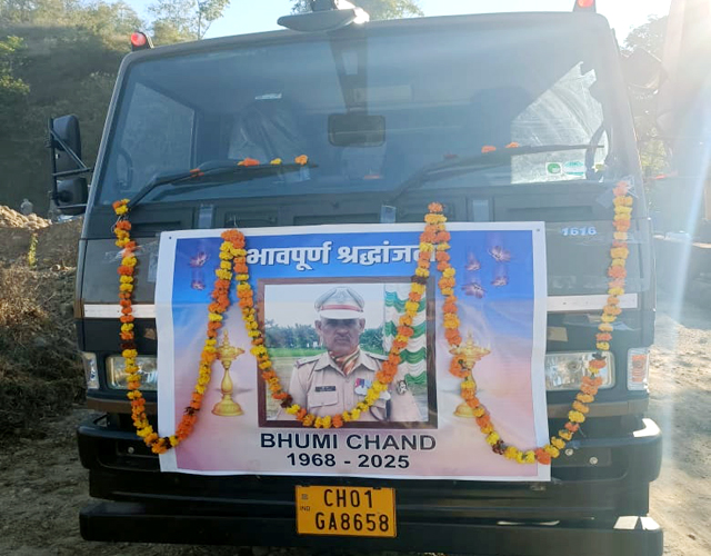 भोरंज (रवि): हमीरपुर जिला के उपमंडल भोरंज की ग्राम पंचायत दाड़ी के गांव दमुई में मंगलवार काे उस समय माहौल गमगीन हो गया, जब भारत-तिब्बत सीमा पुलिस (ITBP) के जवान भूमि चंद (56) का पार्थिव शरीर उनके पैतृक गांव पहुंचा। कर्नाटक में अपनी यूनिट में तैनात भूमि चंद का ड्यूटी के दौरान ब्रेन स्ट्रोक आने से निधन हो गया था।