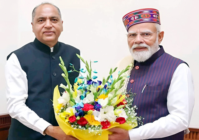 शिमला (कुलदीप): पूर्व मुख्यमंत्री एवं नेता प्रतिपक्ष जयराम ठाकुर ने नई दिल्ली में प्रधानमंत्री नरेंद्र मोदी से मुलाकात की। उन्होंने इस मुलाकात के दौरान हिमाचल प्रदेश से जुड़े विषयों पर चर्चा की। उन्होंने इस मुलाकात के बाद मीडिया से बातचीत में कहा कि उनकी हिमाचल प्रदेश से जुड़े हितों से जुड़े विभिन्न ज्वलंत और सार्थक विषयों पर भी विस्तार से चर्चा हुई है। उन्होंने आरोप लगाया कि राज्य की आर्थिक स्थिति इस समय वित्तीय आपातकाल जैसी हे। उन्होंने आरोप लगाया कि मुख्यमंत्री अनाथ व विधवा सैस जुटाकर सरकार को चलाना चाहते हैं। उन्होंने आरोप लगाया कि मुख्यमंत्री ने बिना सोचे-समझे ही राज्य को वित्तीय गर्त में धकेल दिया है।