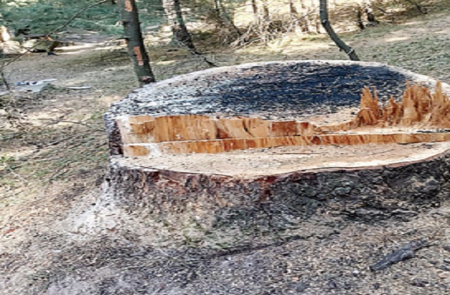 Kullu: अवैध कटान का सबूत मिटाने को जलाए जा रहे पेड़ों के ठूंठ