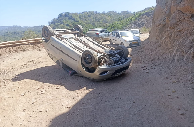 Solan: अचानक ब्रेक फेल होने से अनियंत्रित होकर सड़क पर पलटी कार