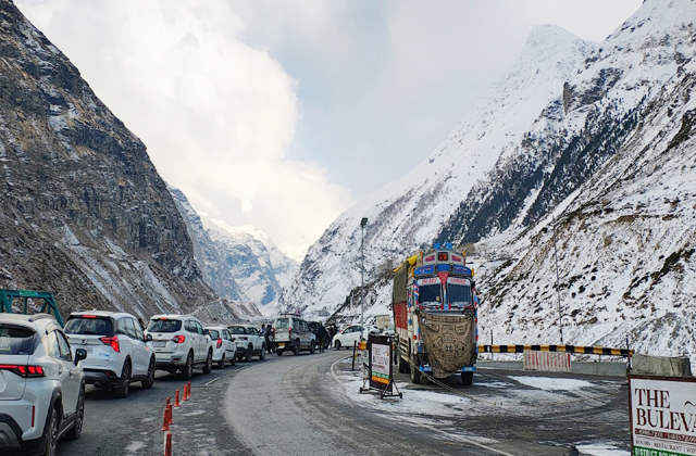 मनाली (सोनू): पर्यटन नगरी मनाली के साथ लगते ऊंचाई वाले क्षेत्रों में सोमवार दोपहर बाद मौसम के करवट बदलते ही हल्की बर्फबारी का दौर आरंभ हुआ। अटल टनल पहुंचे सैलानियों ने भी जमकर लुत्फ उठाया। हालांकि मनाली शहर सहित आसपास के क्षेत्र में दिनभर आसमान में हल्की धूप और बादल छाए रहे। ऐसे में आज अटल टनल रोहतांग पहुंचे सैलानियों ने यहां पर हो रही ताजा बर्फबारी का जमकर लुत्फ उठाया। हालांकि इस दौरान कुछ समय के लिए कोकसर के लिए ट्रैफिक को रोका गया। जैसे ही बर्फबारी का दौर थमा यहां पर ट्रैफिक फिर से सुचारू रूप से चलता रहा।
