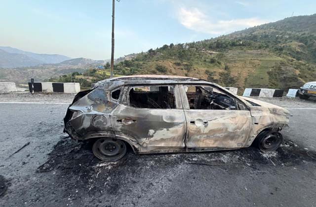 Sirmour: एनएच- 707 पर हादसा: जलकर राख हुई स्विफ्ट कार, बाल-बाल बचे श्रद्धालु