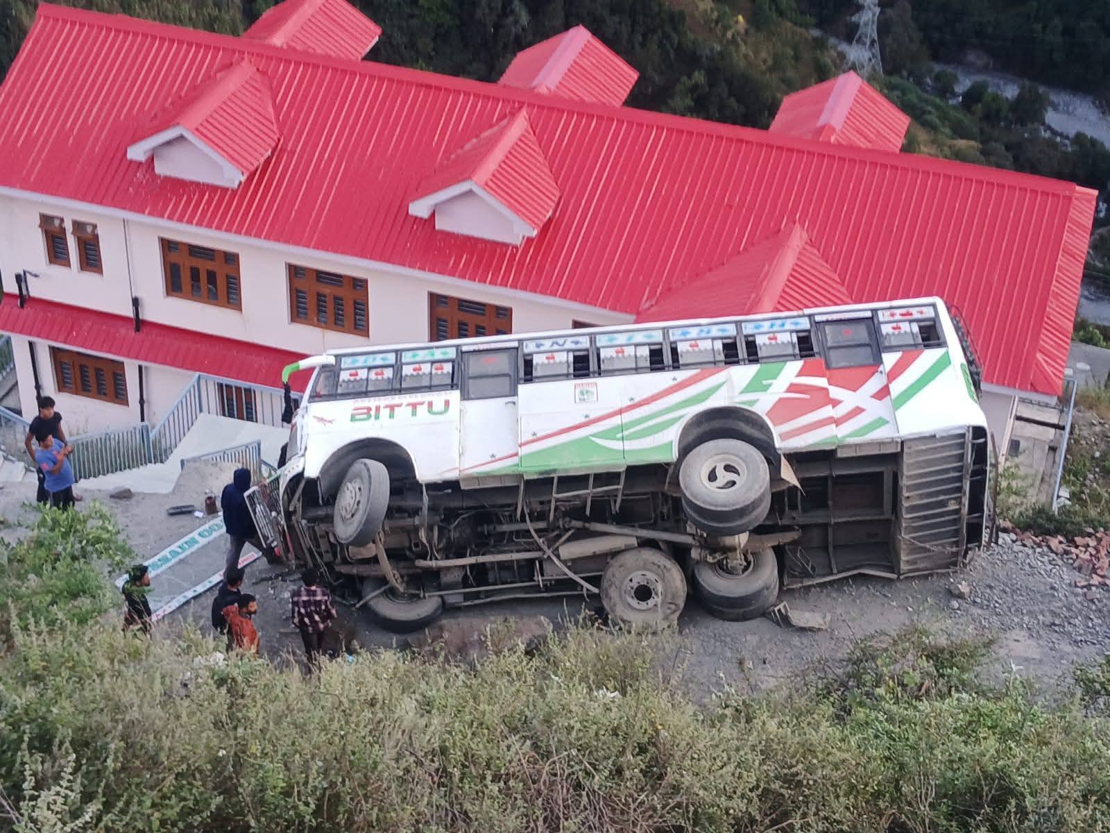 हिमाचल में निजी बस अनियंत्रित होकर लुढ़की, मचा हड़कंप