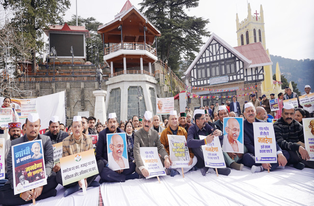 शिमला (राक्टा): केंद्र सरकार पर मनरेगा को समाप्त करने का आरोप लगाते हुए मुख्यमंत्री ठाकुर सुखविंदर सिंह सुक्खू ने सोमवार को अपने मंत्रिमंडल के सहयोगियों के साथ ऐतिहासिक रिज मैदान स्थित राष्ट्रपिता महात्मा गांधी की प्रतिमा के समक्ष धरना दिया। इस अवसर पर मुख्यमंत्री ने कहा कि केंद्र सरकार ने मनरेगा को समाप्त कर ग्रामीण क्षेत्र के गरीबों के साथ कुठाराघात किया है। उन्होंने कहा कि मनरेगा को ग्रामीण क्षेत्रों में रोजगार के अवसर सृजित करने के लिए कांग्रेस सरकार द्वारा आरंभ किया गया था, जोकि पूर्व प्रधानमंत्री डा. मनमोहन सिंह तथा कांग्रेस की वरिष्ठ नेता सोनिया गांधी की सोच थी। उन्होंने कहा कि मनरेगा में पहले ग्राम पंचायत के प्रधान और ग्राम सभा की मांग पर लोगों के लिए विकास योजनाएं बनती थीं तथा लागू की जाती थीं, जबकि अब प्रधान योजनाएं नहीं बनाएंगे।