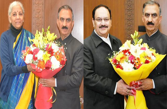 मुख्यमंत्री सुखविंदर सिंह सुक्खू ने नई दिल्ली में केंद्रीय स्वास्थ्य एवं परिवार कल्याण मंत्री जगत प्रकाश नड्डा से भेंट करके हिमाचल प्रदेश से जुड़ीं परियोजनाओं से संबंधित मुद्दों को केंद्र सरकार के समक्ष रखने तथा प्रदेश के विकास में सहयोग का आग्रह किया। उन्होंने स्वास्थ्य क्षेत्र को सुदृढ़ करने के दृष्टिगत केंद्रीय मंत्री से विस्तृत चर्चा की। उन्होंने स्वास्थ्य अधोसंरचना के विकास से जुड़ीं परियोजनाओं सहित आयुष्मान भारत योजना में केंद्रीय सहयोग का आग्रह किया। जगत प्रकाश नड्डा ने हिमाचल को हरसंभव सहायता का आश्वासन दिया।