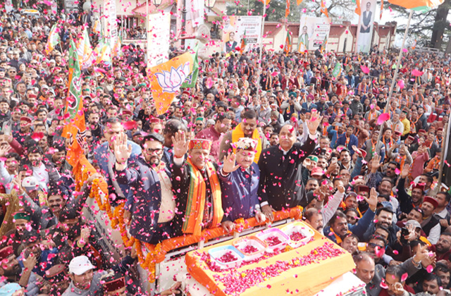 भाजपा के 2 पूर्व अध्यक्ष सतपाल सिंह सत्ती और सुरेश कश्यप के साथ प्रदेश महामंत्री संजीव कटवाल ने भी मंच को सांझा किया। दोनों पूर्व अध्यक्षों ने जहां प्रदेश सरकार पर निशाना साधा, वहीं प्रदेश महामंत्री ने मंच संचालन के दायित्व को निभाया। इस दौरान ढोल-नगाढ़ों की गूंज भी सुनाई दी गई तथा नड्डा ने खुली गाड़ी में उपस्थित लोगों का अभिवादन स्वीकार किया।