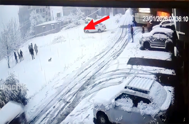 सोशल मीडिया पर वायरल हो रहे इस सीसीटीवी फुटेज में बर्फबारी का असली खतरा साफ देखा जा सकता है। वीडियो में सड़क किनारे खड़ी एक कार अचानक बर्फ के कारण अपनी जगह से फिसलने लगती है। इस दाैरान ड्राइवर बोनट को अपने हाथों से पकड़कर कार काे रोकने की कोशिश करने लगता है, लेकिन कार की रफ्तार कम हाेने की बजाय और तेज हाे जाती है। इसके चलते ड्राइवर कार के साथ घिसटता हुआ चला जाता है।