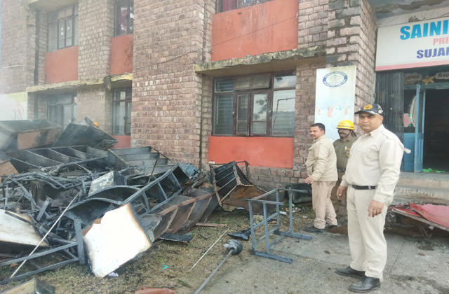 अचानक लगी आग से तीसरी मंजिल में रखा फर्नीचर व एनसीसी स्टोर रूम में कैडेट्स की वर्दियां, शूज, बैल्टें आदि सामान जलकर राख हो गया। विदित रहे आग पर काबू पाने के लिए जिला मुख्यालय हमीरपुर, नादौन व जयसिंहपुर से अग्निशमन विभाग के वाहन घटना स्थल पर पहुंच गए थे, जिन्होंने कड़ी मशक्कत के साथ करीब 1 घंटे के अंतराल में आग पर काबू पा लिया। सैनिक स्कूल भवन की तीसरी मंजिल में लगी आग के कारणों का पता लगाया जा रहा है।