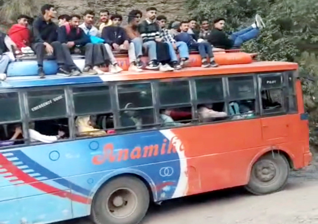 साेलन (नरेश पाल): दिवाली के त्याैहार पर जहां हर कोई अपने घर सुरक्षित पहुंचने की कामना करता है, वहीं सोलन-चंबीधार रूट पर मंजर कुछ और ही कहानी बयां कर रहा है। यहां निजी बसों में ओवरलोडिंग की सारी हदें पार हो चुकी हैं और यात्री अपनी जान जोखिम में डालकर बसों की छतों पर सफर कर रहे हैं। यह खतरनाक नजारा देखकर ऐसा लगता है मानो इस बार यमराज भी दिवाली मनाने छुट्टी पर चले गए हैं और लोगों को मौत से आंखें मिलाने की खुली छूट मिल गई है।