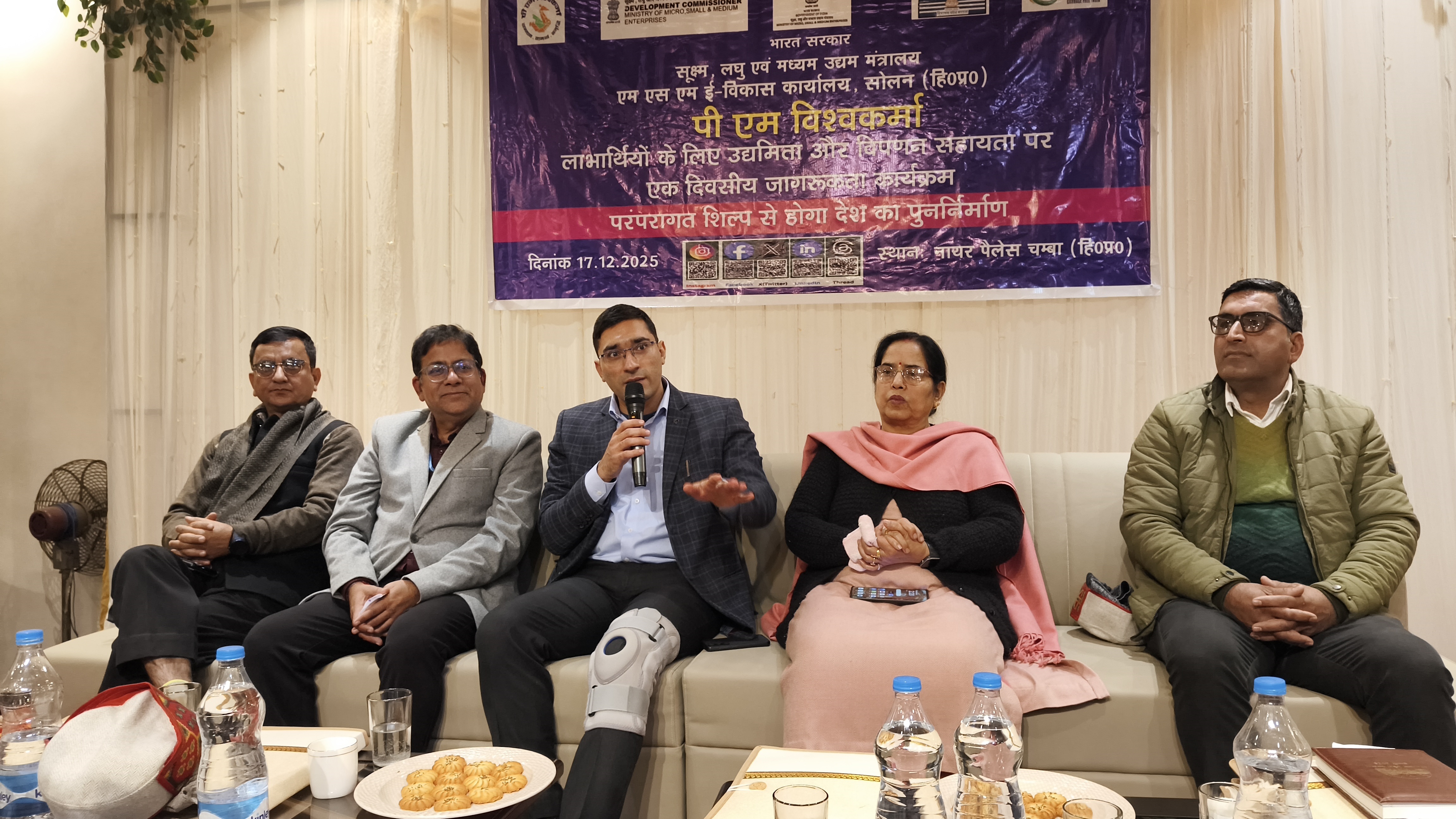 चंबा। उपायुक्त चंबा मुकेश रेपसवाल ने कहा कि प्रधानमंत्री विश्वकर्मा योजना पारंपरिक कारीगरों एवं शिल्पकारों को आत्मनिर्भर और आर्थिक रूप से सशक्त बनाने की दिशा में एक महत्वपूर्ण योजना है। योजना से जुड़े कारीगरों और शिल्पकारों को इसका भरपूर लाभ उठाना चाहिए उपायुक्त सूक्ष्म, लघु एवं मध्यम उद्यम (एमएसएमई) की ओर से प्रधानमंत्री विश्वकर्मा योजना के लाभार्थियों के लिए उद्यमिता एवं विपणन सहायता पर आयोजित एक दिवसीय जागरूकता कार्यशाला में बोल रहे थे।