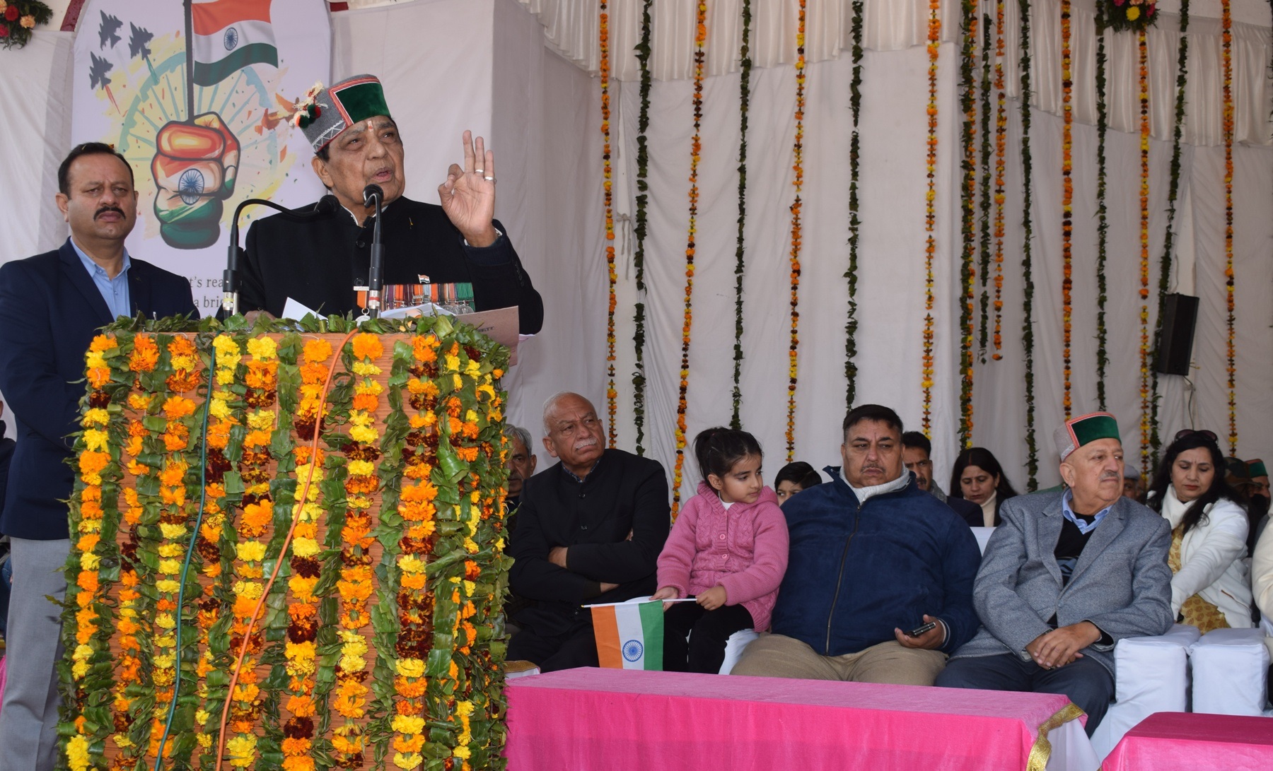 सोलन। स्वास्थ्य एवं परिवार कल्याण, सामाजिक न्याय एवं अधिकारिता तथा सैनिक कल्याण मंत्री कर्नल डॉ. धनीराम शांडिल ने कहा कि प्रदेश सरकार आत्मनिर्भरता का मूल मंत्र अपनाकर समृद्ध हिमाचल की परिकल्पना को साकार करने के लिए प्रतिबद्ध है। डॉ. शांडिल आज यहां ऐतिहासिक ठोडो मैदान में ज़िला स्तरीय गणतंत्र दिवस समारोह की अध्यक्षता कर रहे थे। डॉ. शांडिल ने इससे पूर्व राष्ट्रीय ध्वज फहराया तथा पुलिस, गृहरक्षा, राष्ट्रीय कैडेट कोर एवं अन्य द्वारा आयोजित भव्य मार्चपास्ट की सलामी ली। पुलिस उप निरीक्षक संजीव ने परेड का नेतृत्व किया।