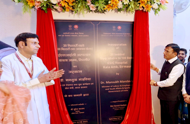 नाहन (आशु): केंद्रीय श्रम एवं रोजगार, युवा एवं खेल मंत्री डॉ. मनसुख मांडविया ने शनिवार को जिला सिरमौर के औद्योगिक क्षेत्र कालाअम्ब में नवनिर्मित 30 बिस्तरों वाले ईएसआईसी अस्पताल का उद्घाटन किया। इस मौके पर उन्होंने अस्पताल के निर्माण में महत्वपूर्ण भूमिका निभाने वाले निर्माण श्रमिकों को भी सम्मानित किया। उन्होंने कहा कि यह अस्पताल सिर्फ एक दीवार से घिरा हुआ ढांचा नहीं है, बल्कि यह एक तीर्थस्थल है, जो श्रम शक्ति, हमारे मेहनती नागरिकों की ताकत का सम्मान करता है।