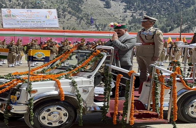 हिमाचल डेस्क। हिमाचल में किन्नौर के रिकांगपिओ में मिनी स्टेडियम में 'हिमाचल दिवस' के अवसर पर एक भव्य कार्यक्रम आयोजित किया गया। इस दौरान मुख्यमंत्री सुखविंदर सुक्खु ने तिरंगा फहराया और परेड की सलामी लेते हुए प्रदेश की जनता को शुभकामनाएं दीं। मुख्यमंत्री ने जनता के लिए कई महत्वपूर्ण घोषणाएं कीं।