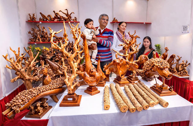 मंडी (फरेंद्र ठाकुर): देवभूमि की धरती पर हुनर की परंपरा आज भी जीवित है और पीढ़ी दर पीढ़ी आगे बढ़ रही है। इसका सजीव उदाहरण अंतर्राष्ट्रीय महोत्सव के दौरान इंदिरा मार्कीट में सजे सरस मेले में देखने को मिल रहा है, जहां मंडी के अरड़ा निवासी कारीगर प्रकाश चंद का स्टाल लोगों की खास दिलचस्पी का केंद्र बना हुआ है। प्रकाश चंद चीड़ और शहतूत की बेकार लकड़ियों व जड़ों से मगरमच्छ, डायनासोर, मोर, बत्तख और बगुले जैसे जीवों की ऐसी जीवंत आकृतियां तैयार कर रहे हैं कि पहली नजर में लकड़ी नहीं बल्कि असली जीव प्रतीत होते हैं। दर्शक कलाकृतियों को हाथ में उठाकर देखने और तस्वीरें लेने से खुद को रोक नहीं पा रहे हैं।