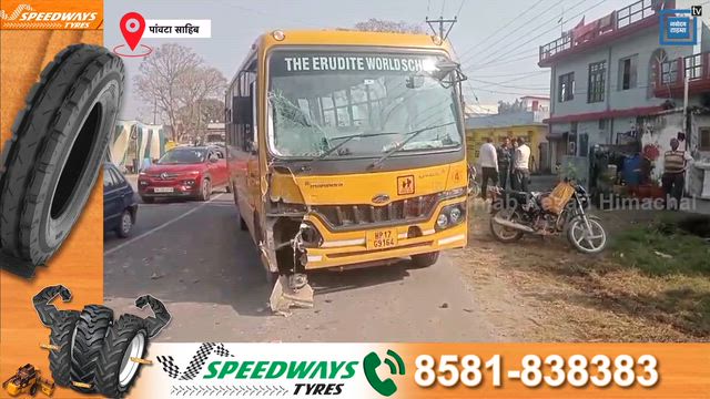 नाहन- पांवटा मार्ग पर धौलाकुआ में स्कूल बस व बाइक की जोरदार टक्कर, बाईक सवार की मौ.त