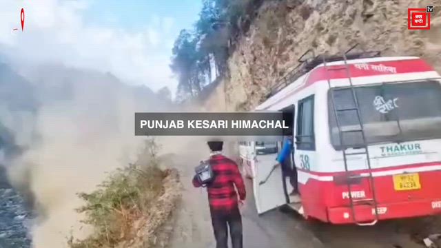 पंडोह- गोहर मार्ग पर थमलाह खड्ड के समीप Landslide,देखें कैसे बची यात्रियों से भरी बस