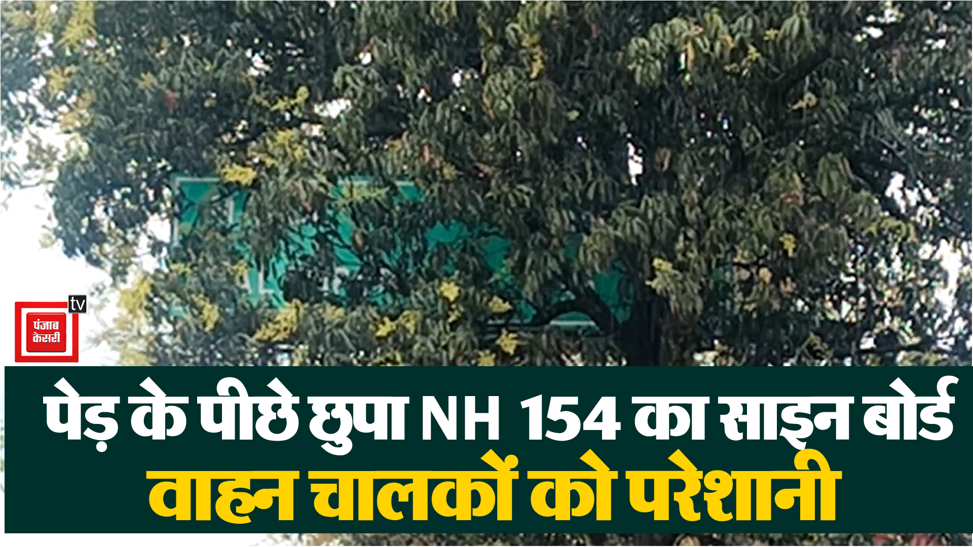 मटौर घुड़कड़ी चौक के पास पेड़ के कारण NH 154 का साइन बोर्ड छिपा, श्रद्धालुओं और वाहन चालकों को दिक्कत