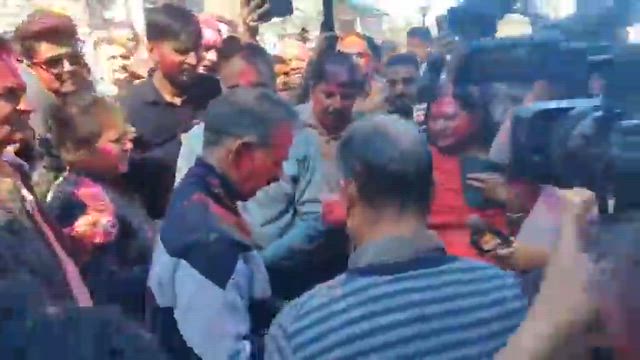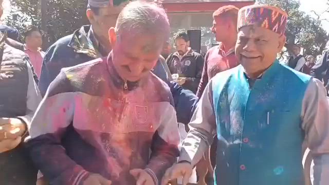 "ओक ओवर में कार्यकर्ताओं से होली खेलते मुख्यमंत्री सुखविंदर सिंह सुक्खू "