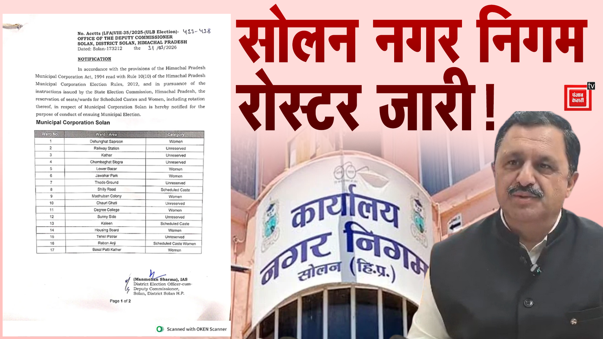 नगर निगम सोलन का रोस्टर जारी, सुनिए क्या अपडेट दे रहे DC मनमोहन शर्मा
